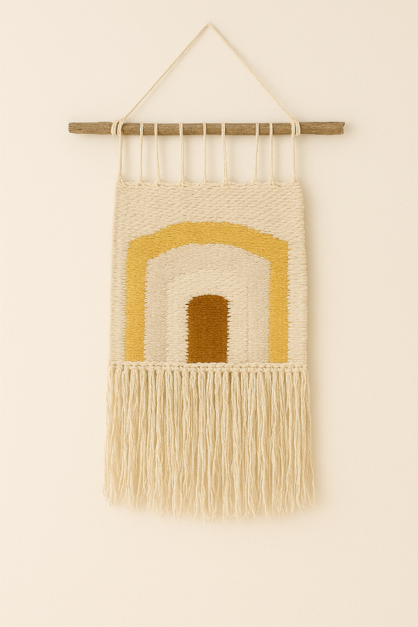 Tapiz de arte textil único, tejido a mano con técnica de telar. Ideal para transformar cualquier espacio con calidez, textura y diseño consciente. Hecho por encargo.